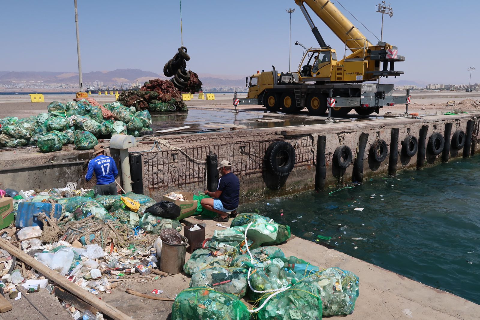 يذكر انه تم جمع ١٥٠ طن من النفايات شكلت النفايات البلاستيكية النسبة الاكبر منها، تليها العلب المعدنية والزجاجية، اضافة الى اقفاص الصيد والاطارات.