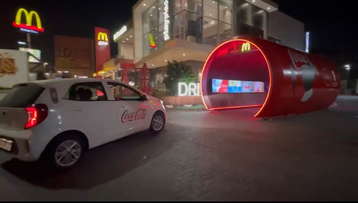 وسيخدم هذا الممر طلبات السيارات في مطعم ماكدونالدز شارع المدينة المنورة حيث يتيح للسيارة الدخول عبر الممر والاستمتاع بأجواء كأس العالم المميزة من خلال شاشات العرض العملاقة المتاحة داخل العبوة والتي يتطي شعور مشابه للأجواء داخل ملعب كرة القدم.