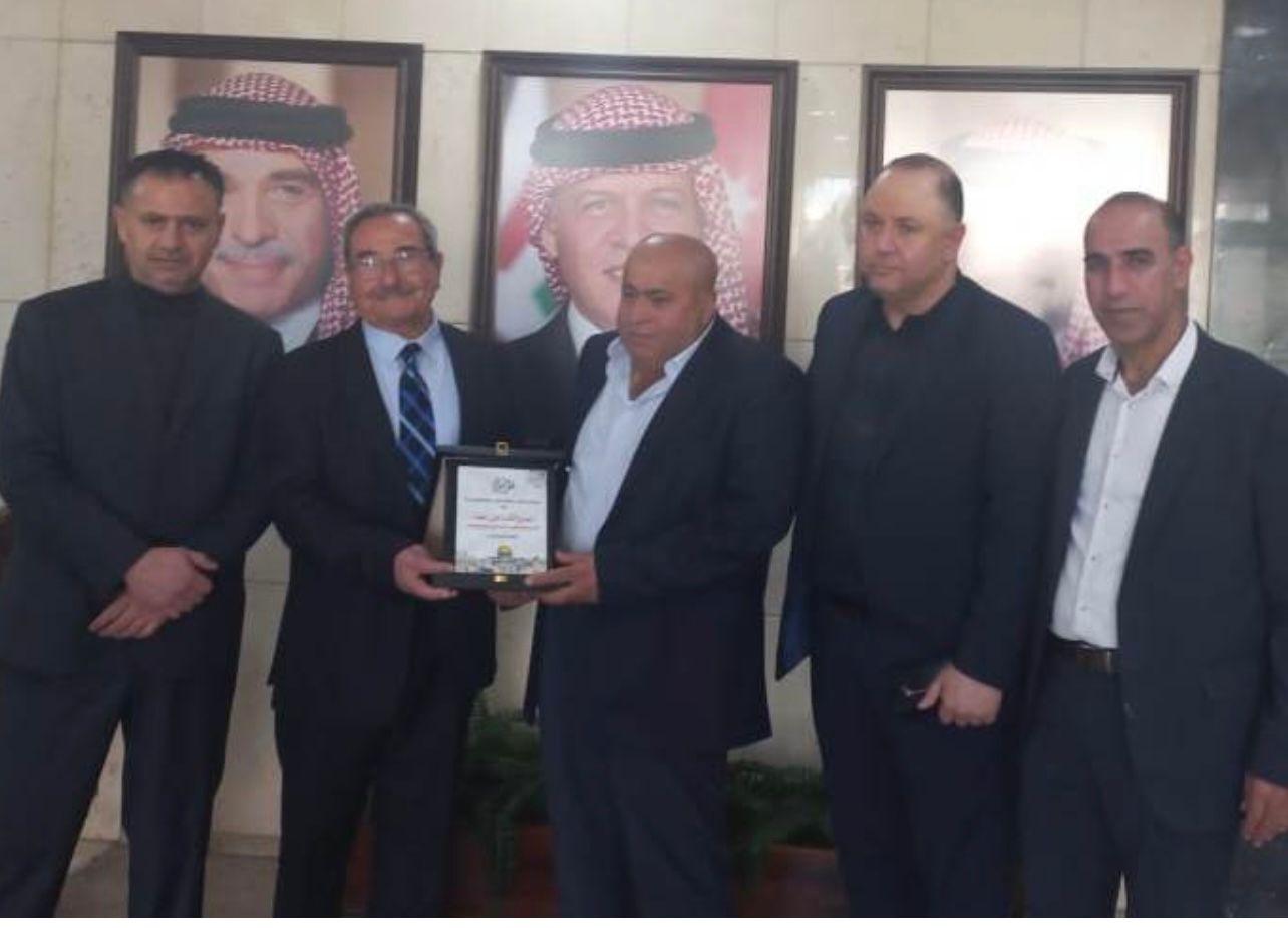 وسلم رئيس دائرة مناهضة الفصل العنصري في منظمة التحرير الفلسطينية رمزي رباح النائب عطية درعا تكريميا من الدائرة خلال زيارته له في مكتبه في مجلس النواب الاردني.