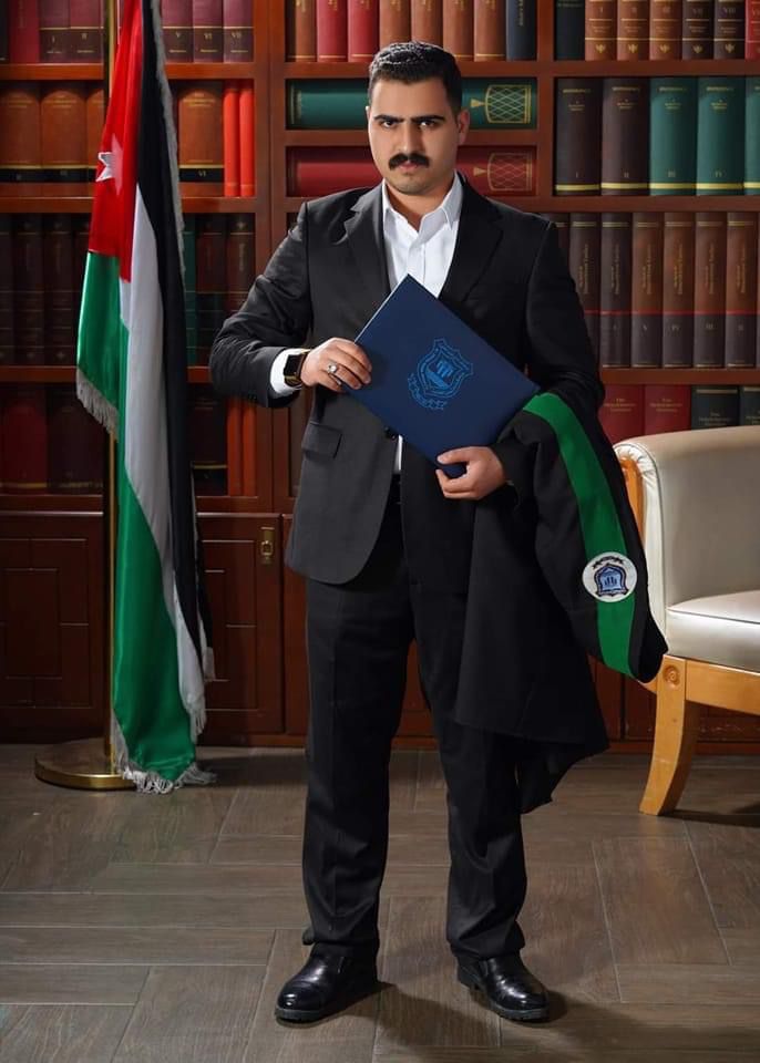 يتقدم السيد عبد الرحمن ياسر العدوان يتقدمون بأحر التهاني والتبريكات لابن العم الغالي ” بكر أحمد العدوان ” بمناسبة تخرجه وحصوله على درجة البكالوريس في القانون بتقدير جيد من جامعة عمان الأهلية .