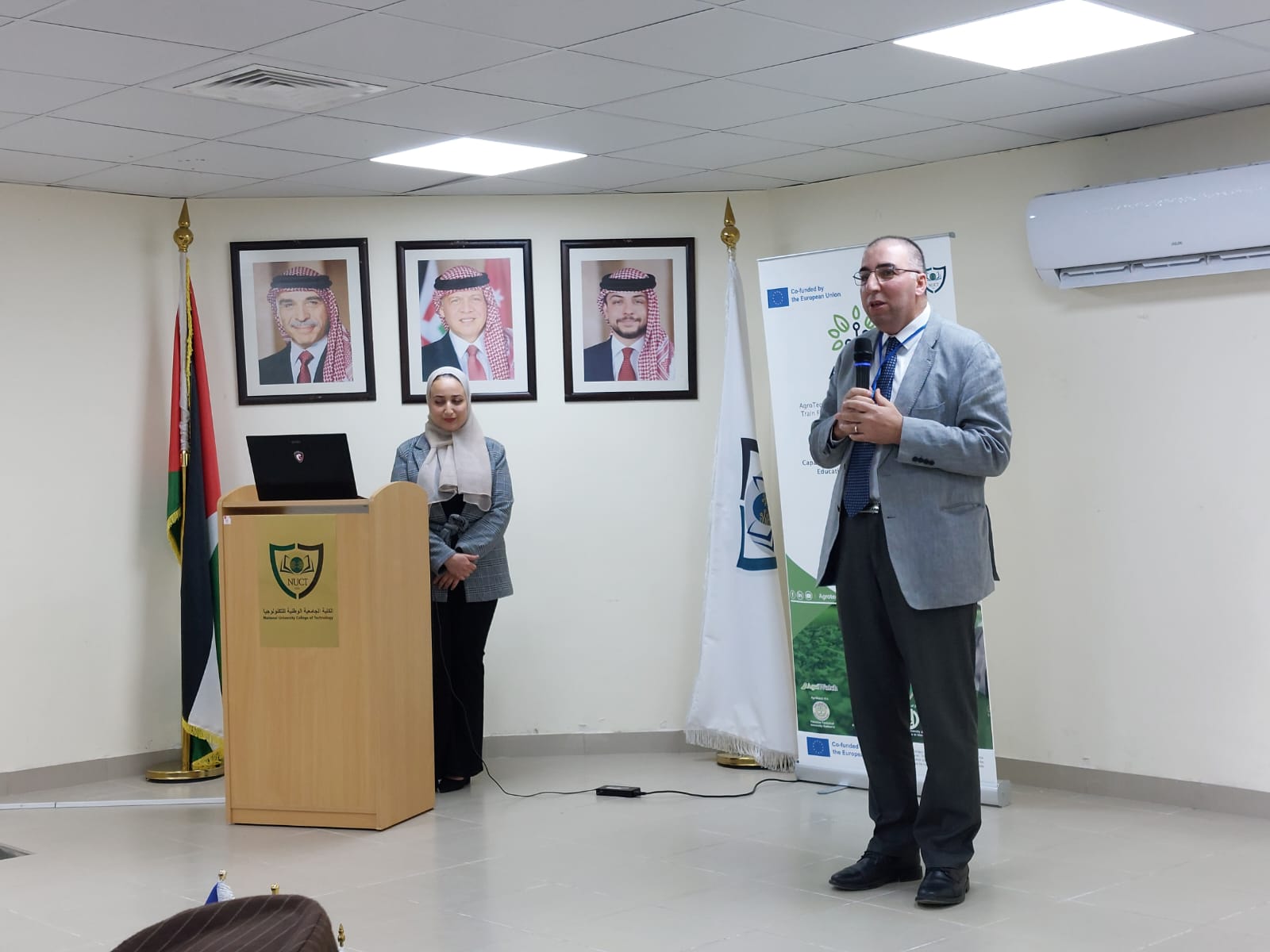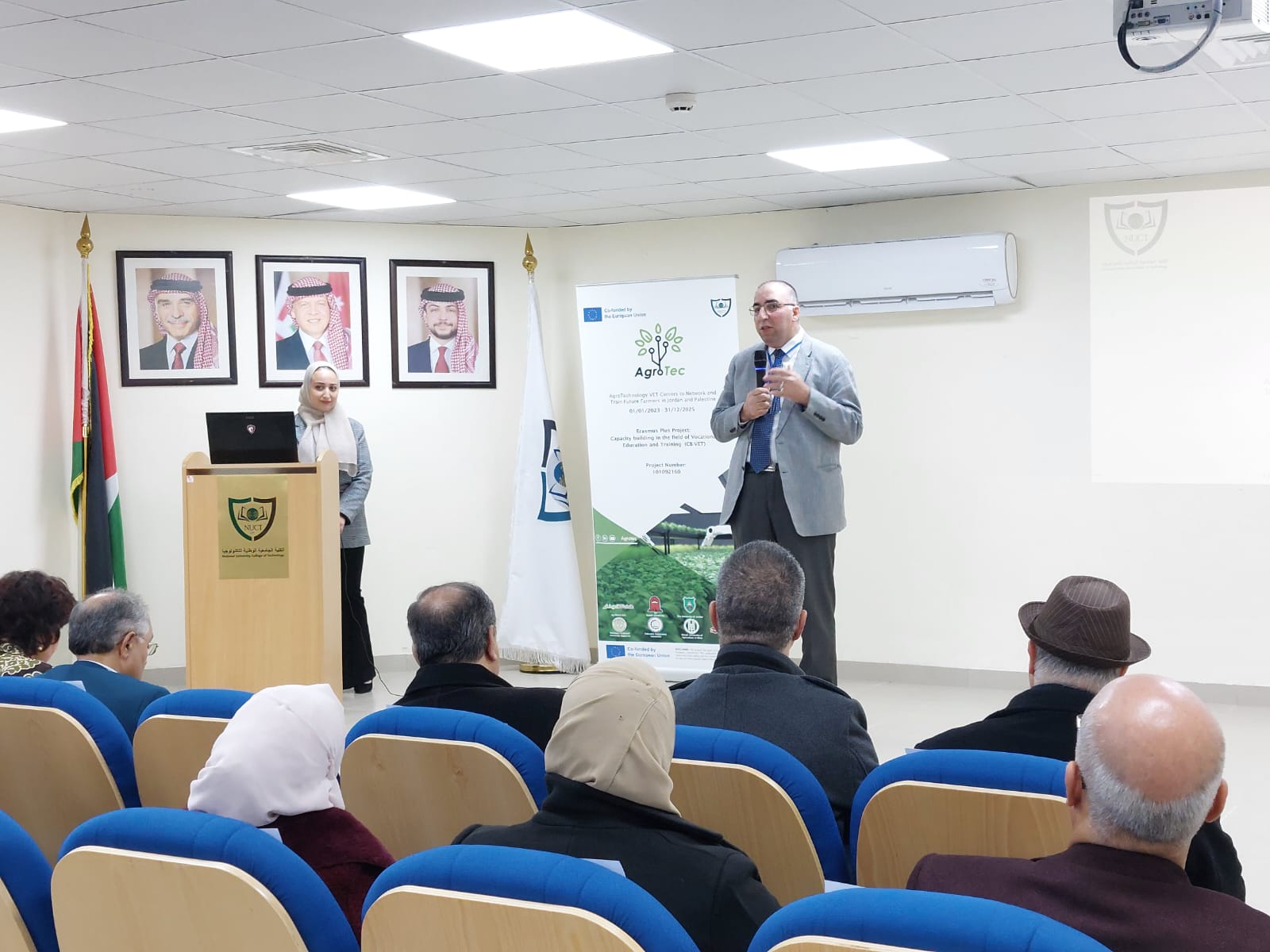 برعاية الاستاذ الدكتور احمد السلايمة عميد الكلية الجامعية الوطنية للتكنولوجيا ــ ابو علندا المنسق الاقليمي للمشروع اسنضافة الكلية فعاليات اليوم الثاني لإجتماع انطلاق المشروع الأوروبي الموسوم بـ AgroTec المعني بالزراعة الذكية ضمن برامج إيراسموس بلس للتعليم المهني VET. بحضور رئيس جامعة الطفيلة منسق المشروع في جامعة مؤتة الدكتور عمر المعايطة ، ومدير برنامج إيراسموس بلس الوطني الدكتور أحمد أبو الهيجا ، وماري هورفرز من المفوضية الأوروبية ، ومديرة وحدة الشؤون الدولية الدكتورة هديل الياسين ، المدير العام للمشروع الدكتور علي أبكر .