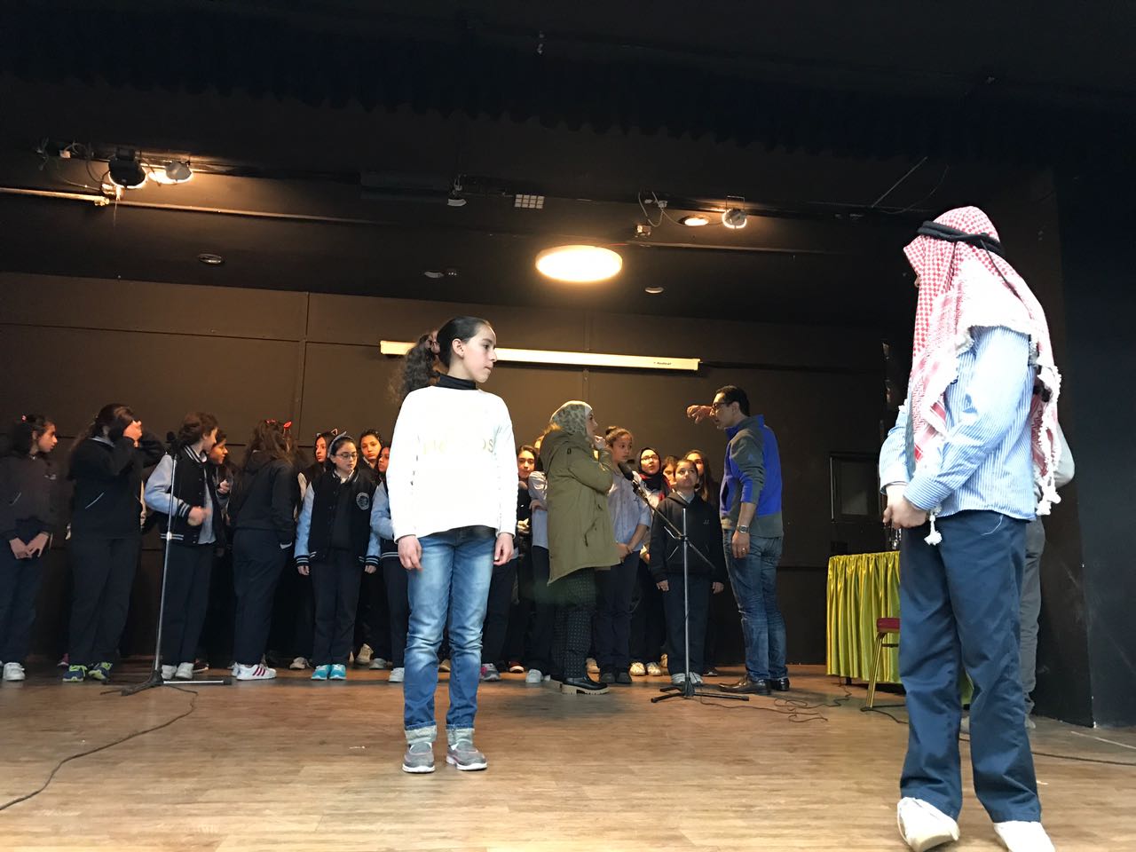 وتتناول المسرحية " كوميديا وطرب " التي كتبتها وأخرجتها المعلمة قمر بدوان ، قضايا هامة وحساسة تخص الأطفال والشباب ، مثل : التفرقة بين الذكور والإناث وخطر المخدرات والإرهاب والتطرف والعنف في المدارس والجامعات .