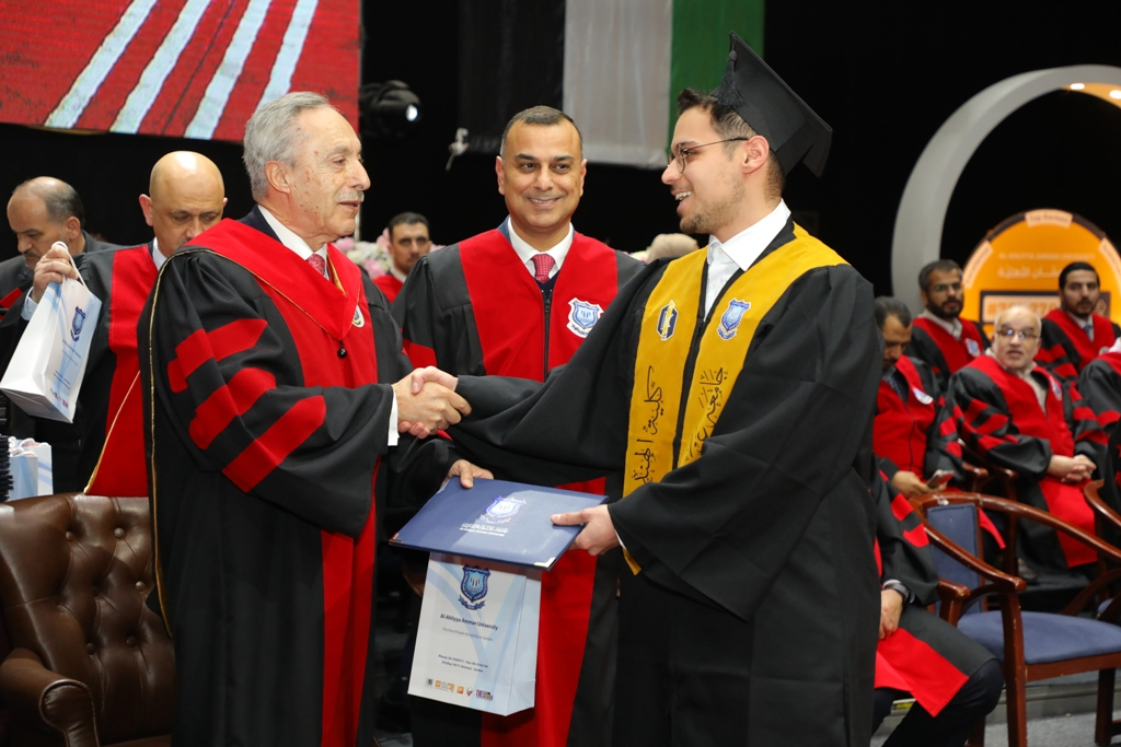وبعد ان قدم الشكر لوالديه وعائلته ولأهالي الخريجين ، اختتم كلمته بالقول للخريجين : ابدأوا من اليوم بخطوات ثابتة نحو أحلامكم، والتفتوا خلفكم أحياناً لتروا المسافة التي قطعتموها، فقد تحتاجون هذا التذكير حين تشعرون بالتعب.
