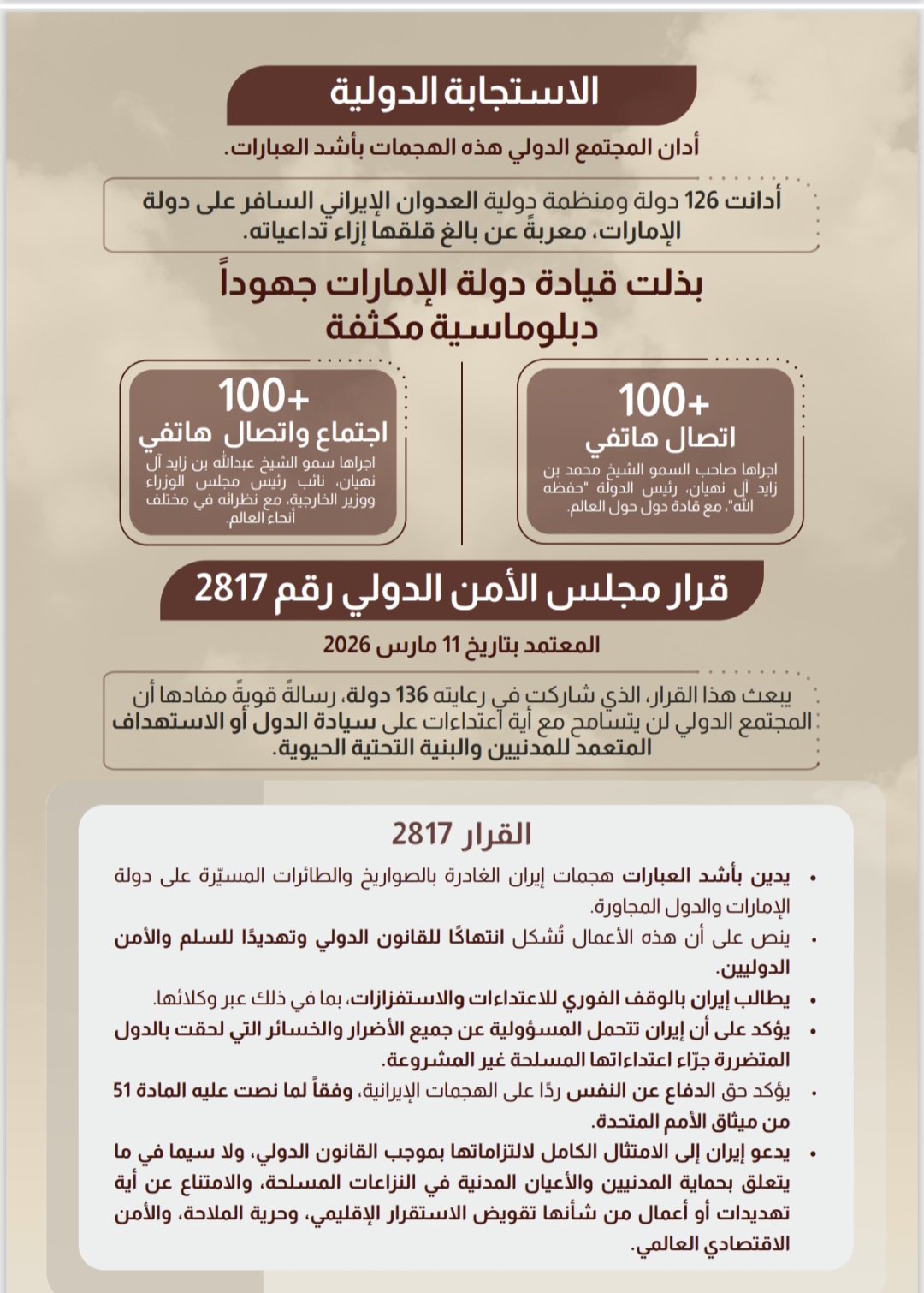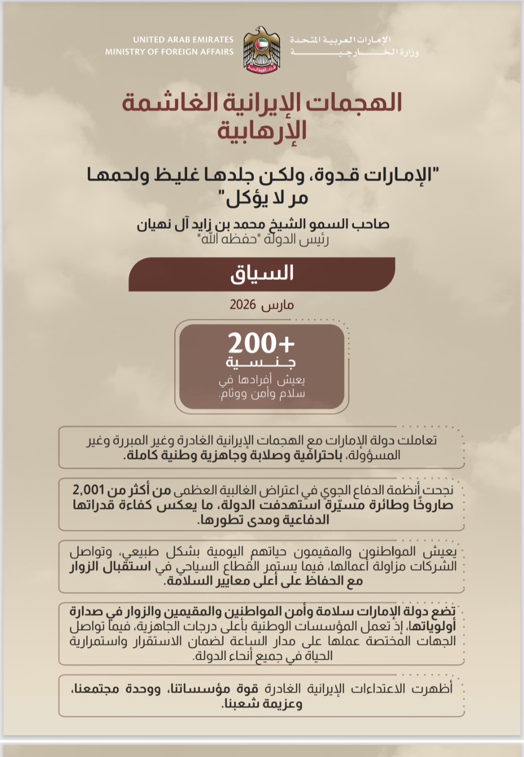 تعامل دولة الإمارات مع تداعيات الحرب الجارية 2026-03-18 / 12:42am تعامل دولة الإمارات مع تداعيات الحرب الجارية،