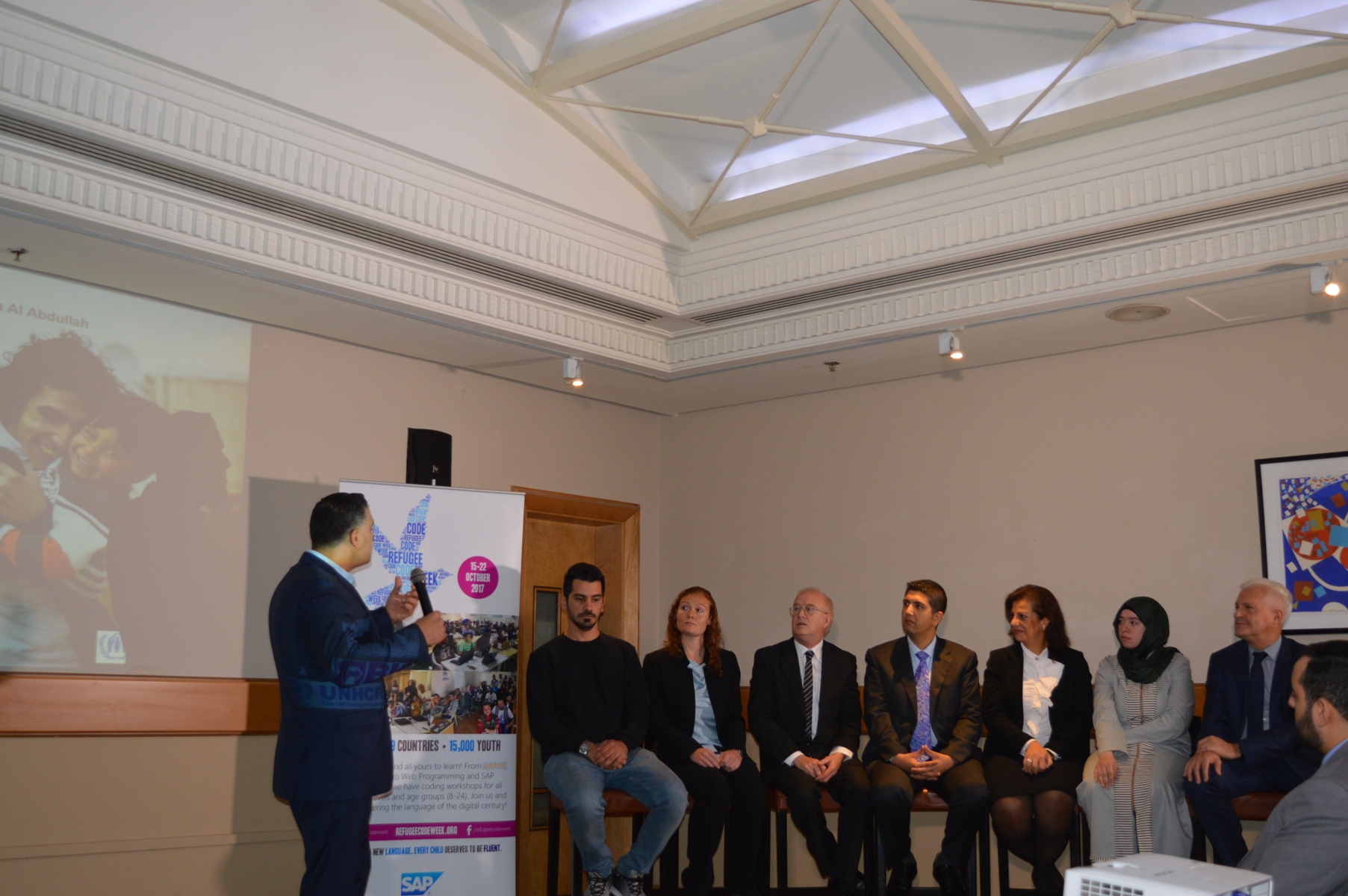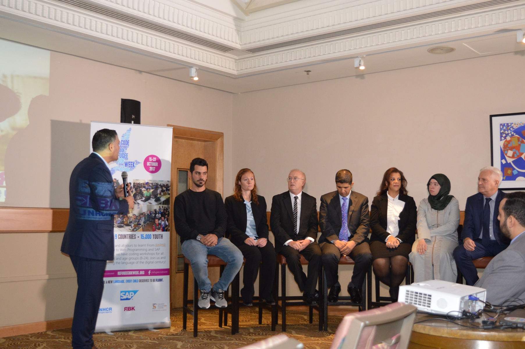 مندوبة عن جلالة الملكة رانيا العبدالله رعت وزير الاتصالات وتكنولوجيا المعلومات وزير تطوير القطاع العام مجد شويكة اليوم حفل اختتام أسبوع البرمجة للاجئين 2017 الذي نفذته كل من شركة "إس إيه بي" المتخصصة بالتحول الرقمي العالمية والمفوضية السامية لشؤون اللاجئين ومركز "غالواي" للتعليم.