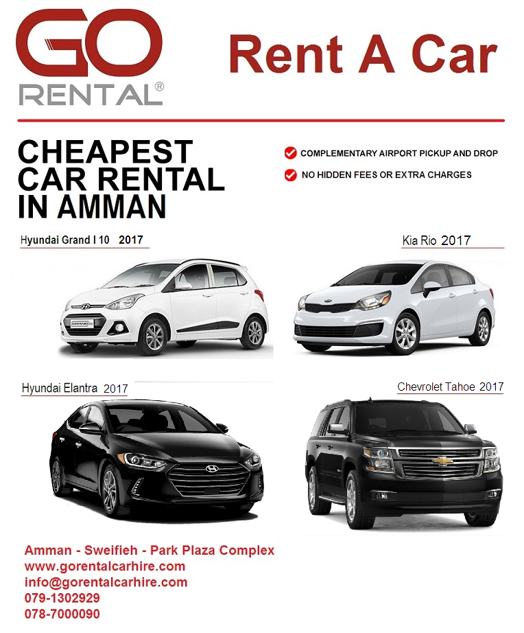 اطلقت شركة go rental لتأجيـر السيارات السياحية – بارك بلازا الصويفية وفروعها بمطار الملكة علياء الدولي وجسر الملك حسين عروضها لتأجير السيارات السياحية بمناسبة مرور العام الاول على تأسيسها .