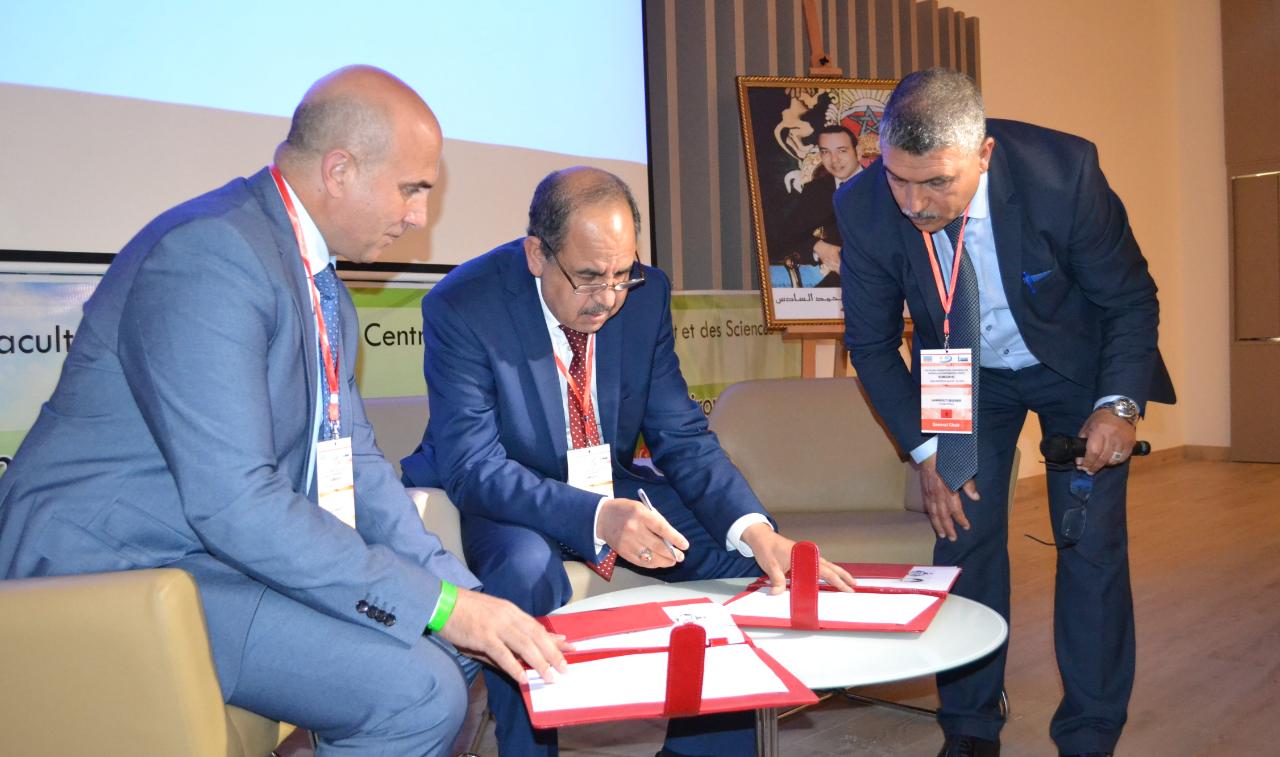 تم توقيع مذكرة تفاهم وتعاون بين جامعة العقبة للتكنولوجيا ممثلة برئيسها الأستاذ الدكتور صلحي الشحاتيت وجامعة محمد الأول ممثلة برئيسها الأستاذ الدكتور محمد بنقدور خلال فعاليات المؤتمر الدولي لعلوم المواد والبيئة والذي انعقد بمدينة السعيدية المغربية خلال الفترة 26-28 نيسان 2018. وتأتي هذه التفاقية إدراكاً من الجامعتين بأهمية التعاون العربي والدولي في مجال التعليم العالي بصفة عامة والمجال الأكاديمي والعلمي بصفة خاصة، وبأهمية التميز في التعليم والتدريب والبحث العلمي في تطوير الكوادر البشرية العاملة في الحقل العلمي والأكاديمي، إضافة إلى مردود وأهمية هذا التعاون على تطوير التعليم العلمي والأدبي والطبي والخدمات الأكاديمية في المملكة الأردنية الهاشمية والمملكة المغربية من خلال تبادل الخبرات الأكاديمية والمهنية والبحثية في كافة الجوانب المتعلقة بالتعليم بشكل عام. وتهدف هذه الإتفاقية إلى وضع إطار للمبادئ الأساسية للتعاون بين الطرفين والتي تحدد أولويات التعاون والتي يمكن توسيعها لاحقاً بموجب ملاحق لهذه الأتفاقية تحدد مشاريع وبرامج تتمشى مع أختصاصات الطرفين وأولوياتهم.