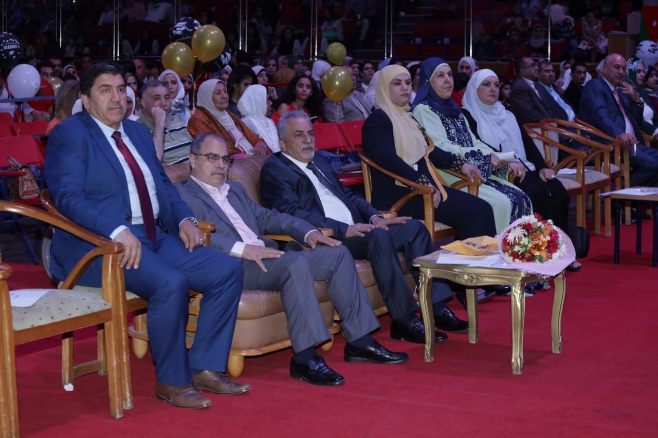 وقد قام الدكتورساري حمدان بتسليم الشهادات للخريجين والخريجات ودروع التميز للطلاب والطالبات الأوائل بالفرعين العلمي والأدبي ..كما تضمن الحفل مجموعة من الفقرات الفنية والفولكلورية المتنوعة.