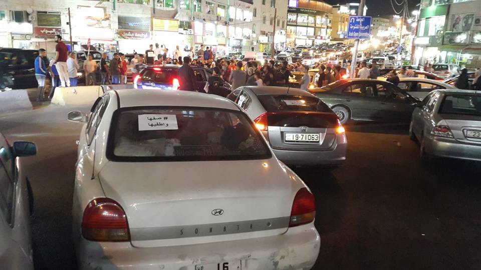 وشهدت منطقة طبرور في العاصمة عمان قيام عدد من المواطنين بركن مركباتهم على الطريق معلقين عليها عبارات احتجاجية في ذات الوقت الذي يستمر في اخرون بركن مركباتهم بالقرب من دار رئاسة الوزراء على الدوار الرابع وفي عدد من المدن الأردني.