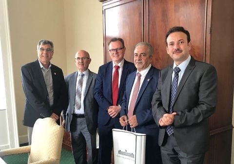 ورافق الوفد الدكتور مهند عودة الممثل الاستراتيجي لجامعة كوينز في الشرق الأوسط وشمال افريقيا والذي كان له دور كبير في تفعيل التعاون بين الجامعتين.