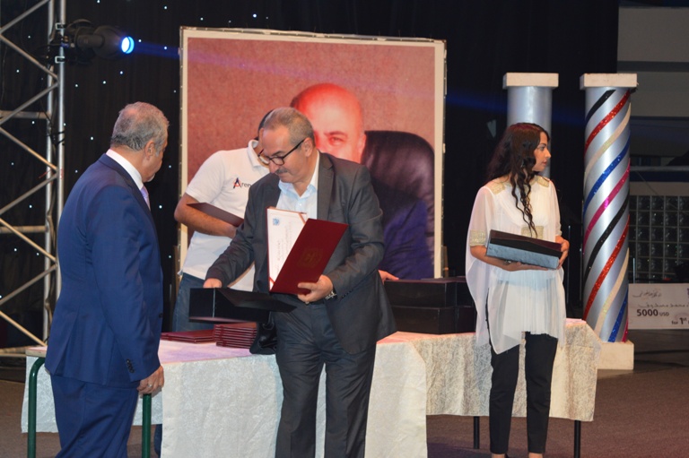 وقد حضر الحفل السفير التونسي خالد الاستاذ الدكتور ساري حمدان رئيس الجامعة والنائب اندريه الحواري وحشد من اصحاب المعالي والعطوفة والسعادة من نواب واكاديميين واقتصاديين واعلاميين الى جانب مسؤولي وممثلي الشركات والمؤسسات المشاركة بالجائزة والموظفين المشتركين بالجائزة وذويهم .
