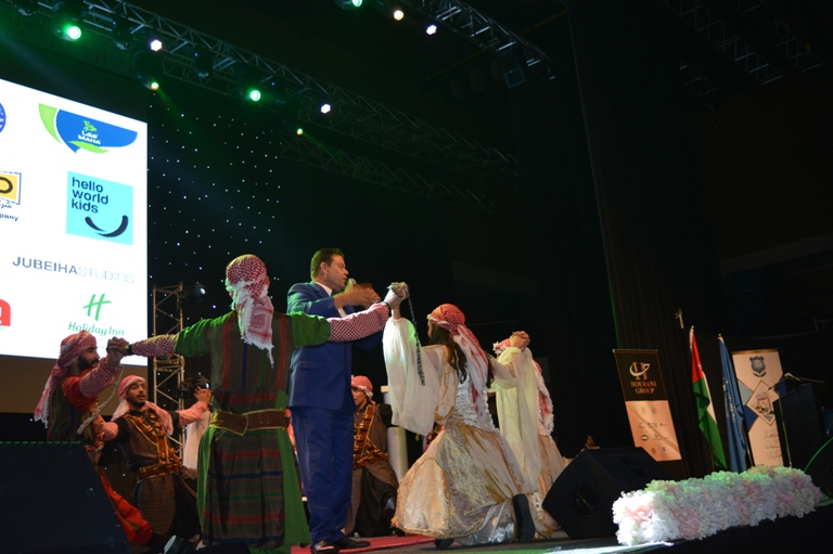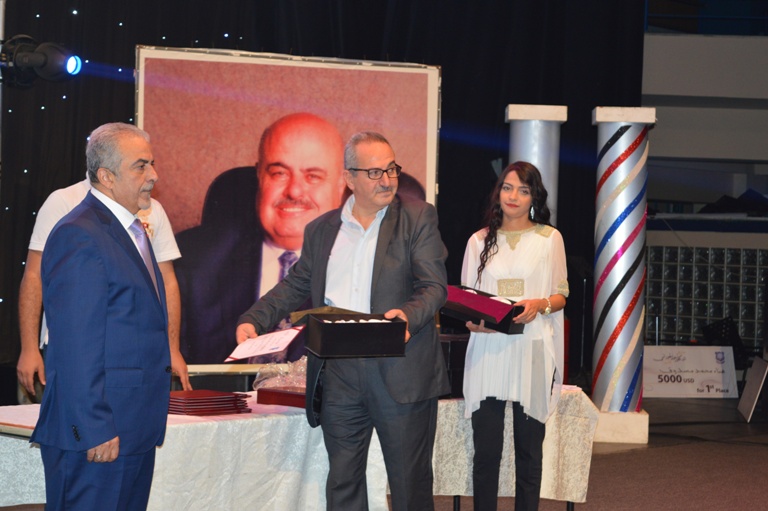 وقام راعي الحفل الدكتورماهرالحوراني بتكريم ضيفة الحفل الفنانة لطيفة التونسية ليتلو ذلك حفل عشاء على شرف المشاركين والحضور .