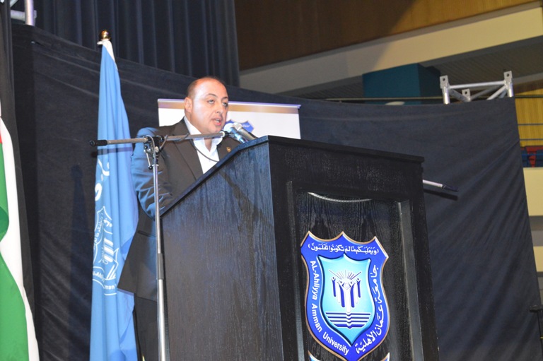 واختتم كلمته بالشكر للسفير التونسي خالد السهيلي على حضوره والشكرلكل من ساهم بإنجاح هذا الحفل خاصا بالشكرالسيدة ايناس الحوراني مديرة دائرة العلاقات العامة والدولية بالجامعة والسيد عمار الجرف والسيد نادر سويدان وجميع العاملين في "الارينا" .