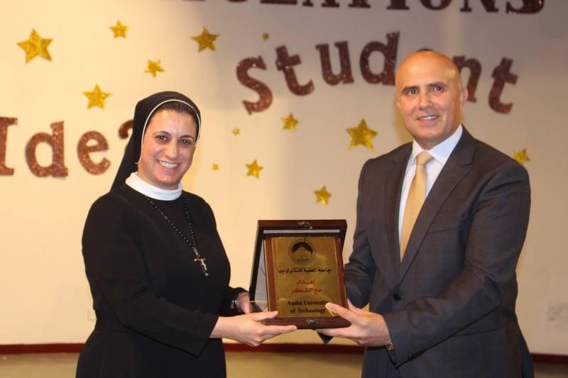 في مبادرة هي الأولى من نوعها قام عطوفة رئيس جامعة العقبة للتكنولوجيا عطوفة الأستاذ الدكتور صلحي الشحاتيت بتقديم منحة دراسية سنوية للطالب الأول من طلبة الثانوية العامة في مدرسة راهبات الوردية / العقبة بدءًا من العام الدراسي 2019/2020, وجاء ذلك خلال الاحتفال الذي أقامته المدرسة برعاية عطوفته لتكريم الطلبة المتميزين من طلبة مدرسة راهبات الوردية على الصعيدين الأكاديمي واللاصفي اليوم السبت الموافق 2018/11/3 وأضاف أن الجامعة ستطرح مبادرة ومشروع اعرف جامعتك قبل التحاقك بها وذلك للعشرة الأوائل على المدرسة بدءًا من الفصل الصيفي الذي يسبق دخولهم الجامعة، وسيتم التوسع في هذه المبادرة لتشمل جميع مدارس محافظة العقبة لاحقًا ، وجاء الإعلان عن هذه المنحة ومبادرة اعرف جامعتك اقتداءً بالقائد جلالة الملك عبد الله الثاني ابن الحسين-حفظه الله ورعاه- في دعمه للتميز والمتميزين بناة المستقبل والذي ظهر من خلال دعم جلالته للعلماء الأردنيين الشباب من داخل الأردن وخارجه خلال فعاليات المنتدى العالمي للعلوم والذي عقد العام المنصرم في البحر الميت تحت الرعاية الملكية السامية. ويأتي الإعلان عن هذه المنحة وعن المبادرة تعبيرًا عن الدور المجتمعي الرائد الذي تضطلع به الجامعة وتجسيدًا لعلاقاتها المتميزة مع مؤسسات المجتمع المحلي بشكل عام والمؤسسات الأكاديمية والتعليمية منها خاصة. وجاءت هذه المبادرة التي قدمها عطوفة رئيس الجامعة كرؤية ثاقبة في محاولة منه وبما يتناسب مع سياسة الجامعة لاستقطاب الطلبة المتميزين من داخل الأردن وخارجه لا سيما وأن الجامعة تحتوي على تخصصات نادرة في محافظة الجنوب منها الهندسية والصيدلة وهذا ما يضمن مخرجات تعليمية على مستوىً عالٍ نستطيع من خلال جامعتنا رفد البلد بمختصين أكفاء. وقد ثمنت إدارة مدارس راهبات الوردية وأولياء أمور الطلبة عاليًا المنحة والمبادرة الإيجابيتين، وأشادوا جميعًا بدور جامعة العقبة للتكنولوجيا ورئيسها الأستاذ الدكتور صلحي الشحاتيت في دعم التميز والمتميزين من قطاع الشباب وتمنوا للجامعة التميز والازدهار في ظل صاحب الجلالة الهاشمية عبد الله الثاني ابن الحسين راعي التميز والمتميزين- حفظه الله.